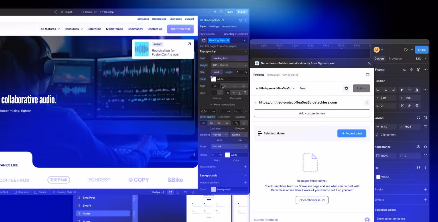 While Webflow is a powerful tool for building complex, feature-rich websites, Detachless is built for speed and simplicity, catering to designers who want to publish directly from Figma. Similarly, Figma Config 2025 introduced Figma Sites, allowing designers to publish fully responsive sites directly from Figma designs.